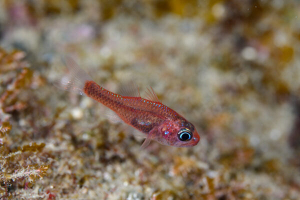 夜の海でもルビーのような輝きを見せる一際目立つ美しいテンジクダイ科の仲間です。