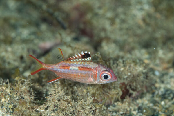 3cm程の小さな体ですが、暗い水中でひときわキラリと目立っています!