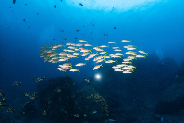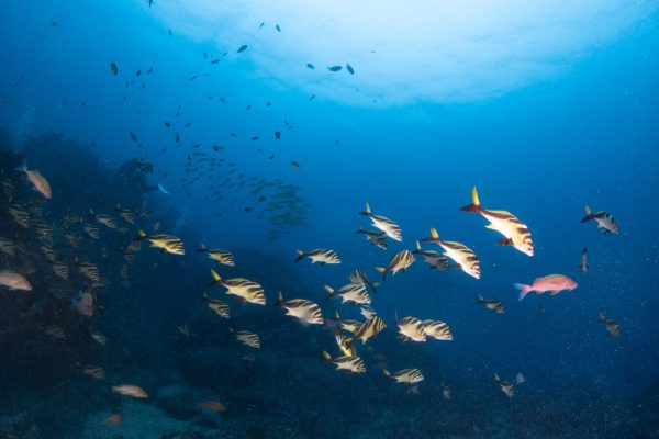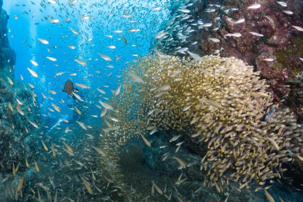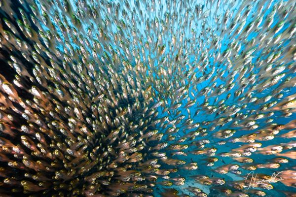 とある根の根の周りにみっちり群れるアカヒメジ。