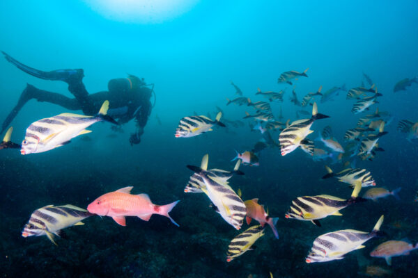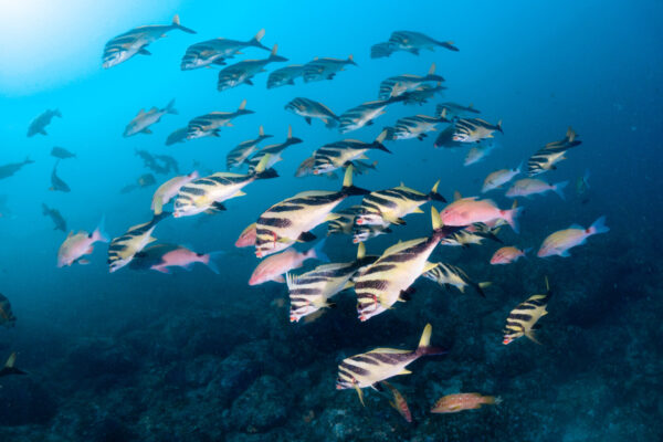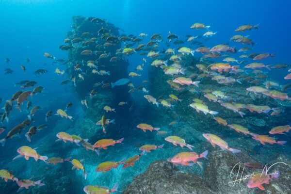 アカヒメジとクロホシフエダイ、時にはロクセンフエダイも織り混ざって