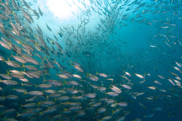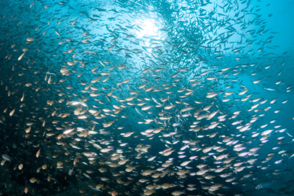 目の前を川のように流れていくアジの群れは圧巻❗️