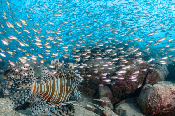 イシモチは狙うハナミノカサゴを絡めて撮影すると、より迫力のあるワイドな写真を撮れちゃいます📸