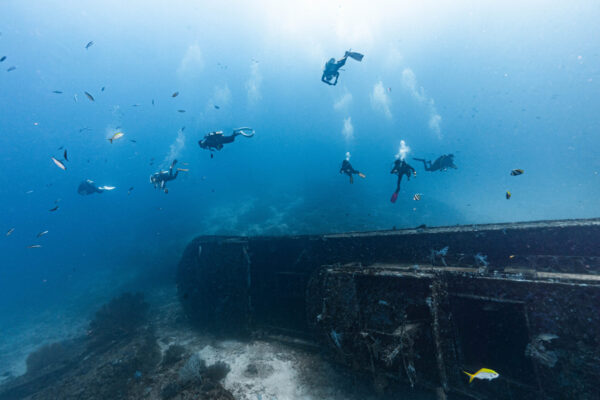 もちろんダイビングができるような設備が整ってて、クルーズ船(母船)を起点に小さな船(ディンギー)でポイントに向かいます。
