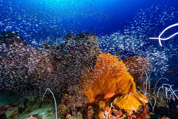 クルーズ中14ダイブ潜りましたが、そのほとんどでこのような風景を見ることができます。