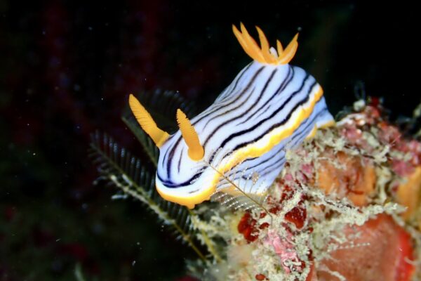 同じオレンジとブラックの配色のピカチューことウデフリツノザヤウミウシ⚡️