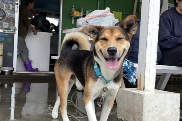 必死にハンマーを追いかけて疲れ果てた僕たちを笑顔で出迎えてくれる名看板犬!