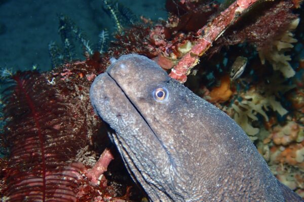 -26mの深場のカゴには珍しいオナガウツボがひょっこり顔を出しています!
