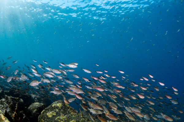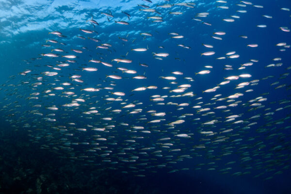 沖縄などの亜熱帯域で見られるノコギリダイのお子様たちも仲良く群れています!